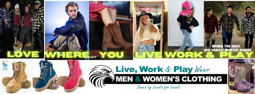 We have all your Favorite Brands, Ariat at 20% off, Hard Yakka Akubra, FXD, Outback,Wrangler, Thomas Cook, Pure Western, Blundstone, Mongrel, Ringers Western, Levis, Lee Riders Bisley Pilbara, Just Country We are adding to our website all the time.